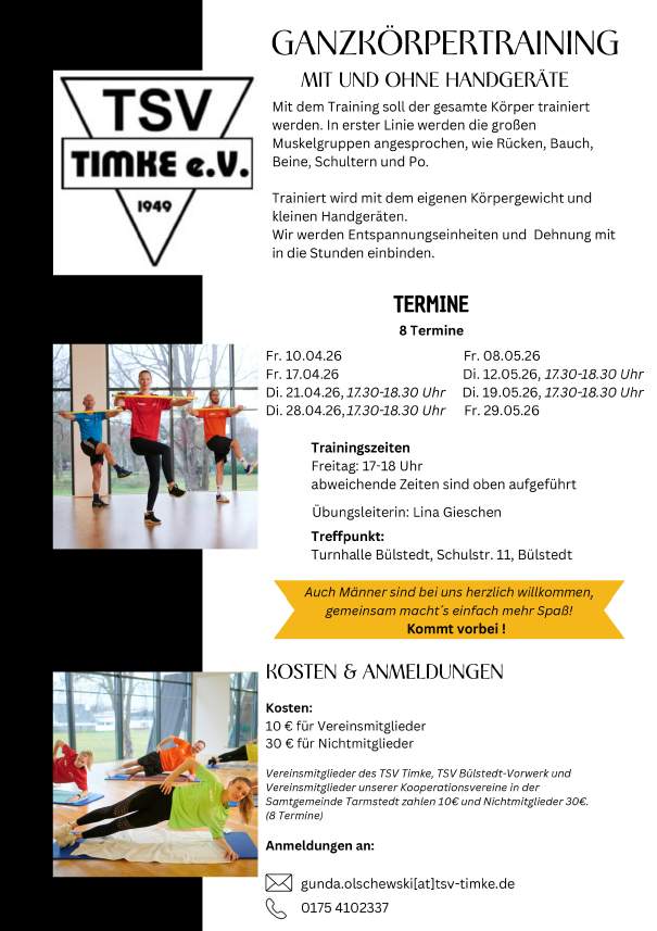 Männer und Frauen aufgepasst, neuer Kurs Ganzkörpertraining ab 10.04.26